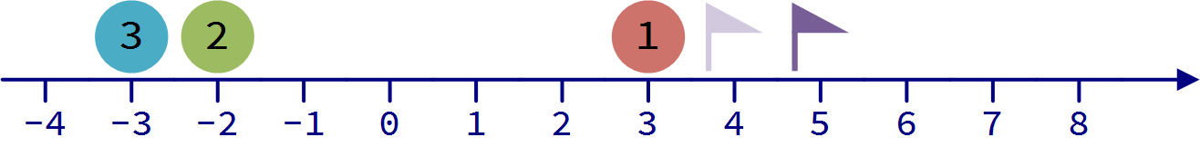 - 若距离 ,则 号选手会立即向前走,走到距前者的后方 单位距离的位置。