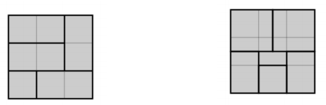 右图为一个无效的划分,因为有些公寓的尺寸非整数且有一个公寓没有靠着边缘。