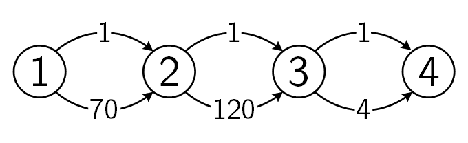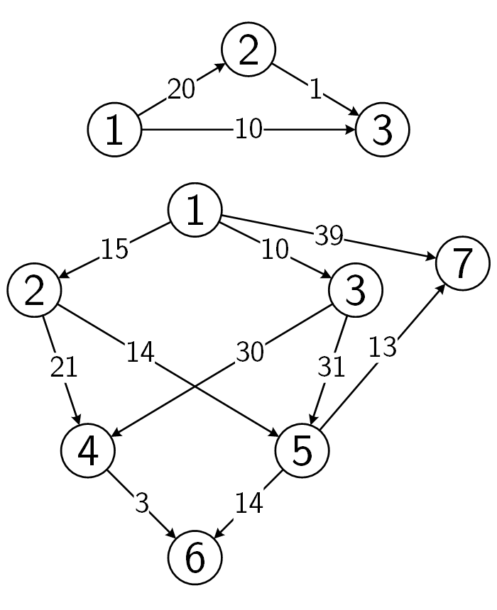 给一个有 个结点 条边的 DAG。所有边均从编号小的结点指向编号大的结点。给出每条边的长度。